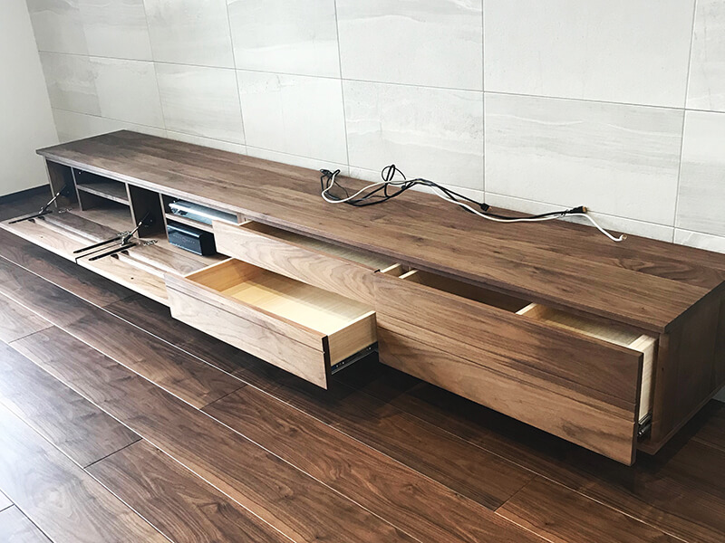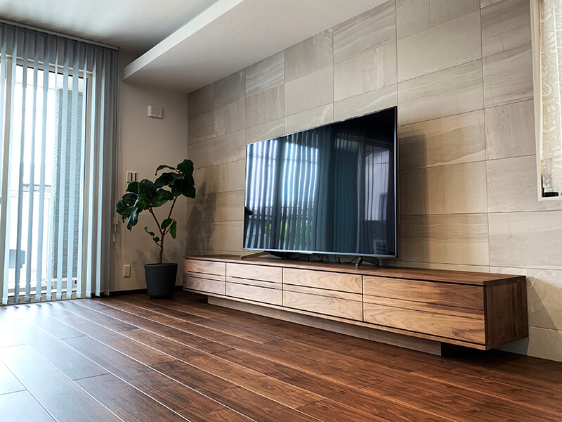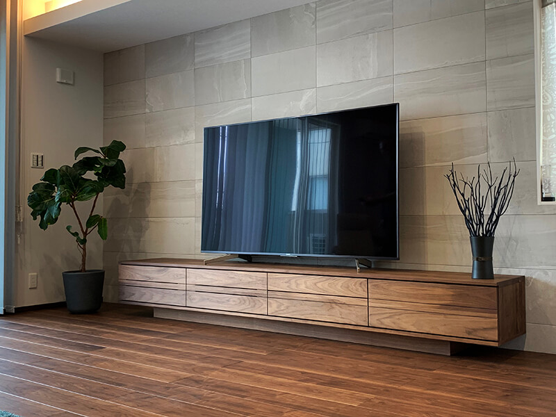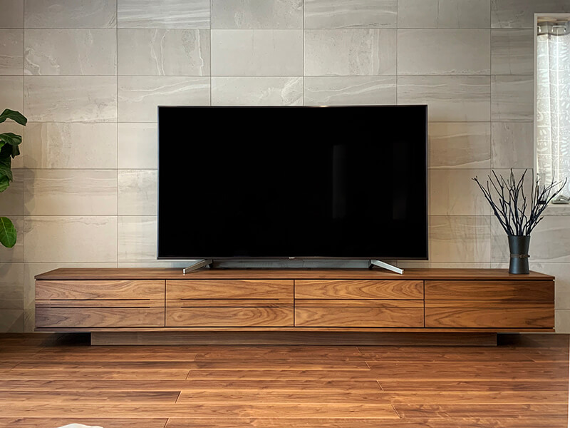 ウォールナット無垢材で仕上げた迫力ある3mサイズの『リネアTVボード』
