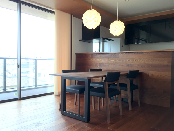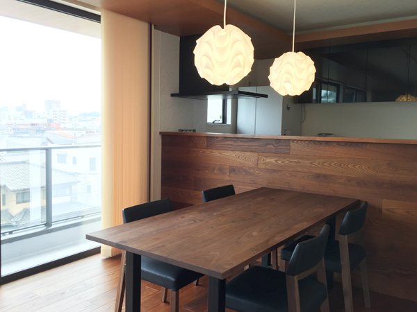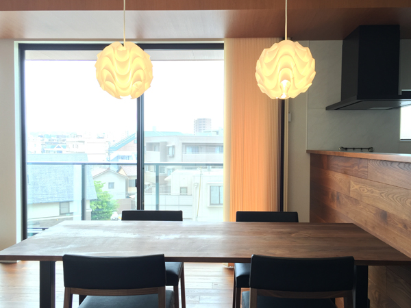 テーブルの高さに合わせて、コードの長さを作成。一番ペンダントライトが美しく見える高さにしました。