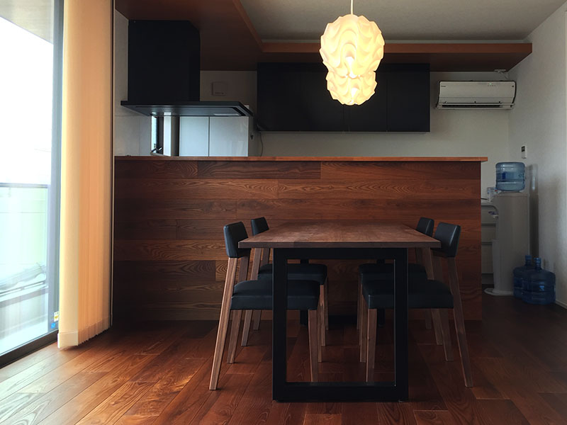 落ち着きのあるウォールナットの空間。