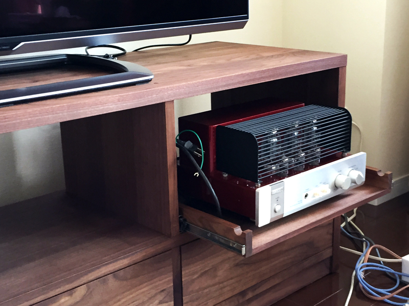アンプが取り出しやすく掃除もしやすい様にスライドトレータイプにしました。