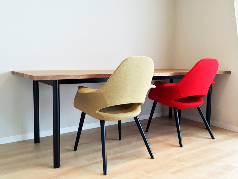 このテーブルなら、どんなチェアを組み合わせてもしっくりきますね!