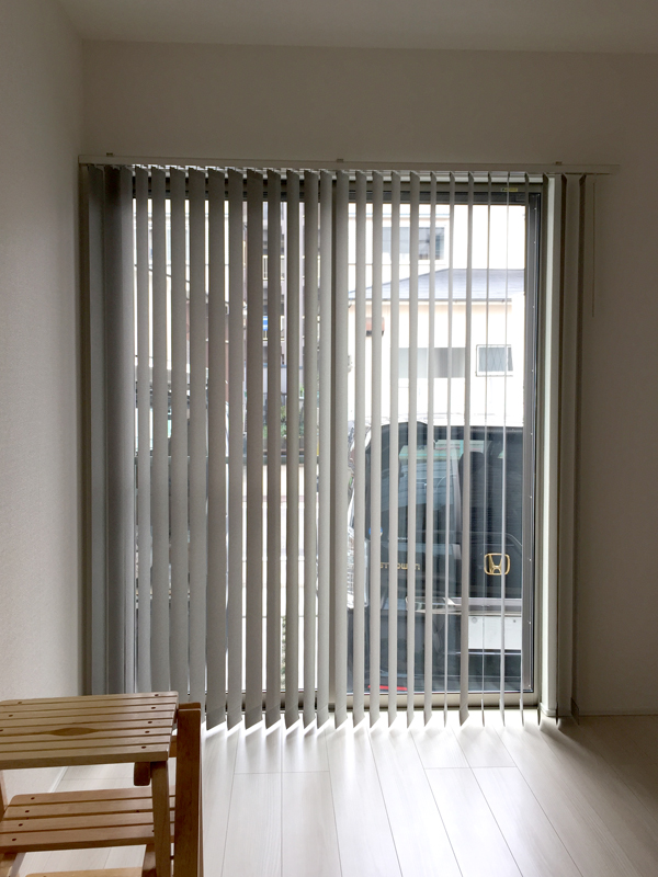 1Fの洋室窓は、リビングと違いバーチカルブラインドで開放感のあるお部屋に!