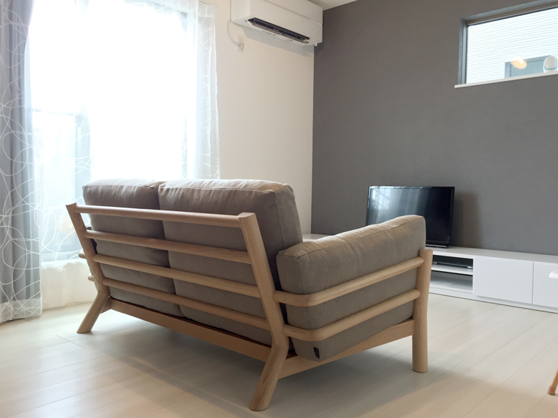ソファは『KARIMOKU NEW STANDARD』ブランドの CASTOR SOFA(キャストールソファ)。