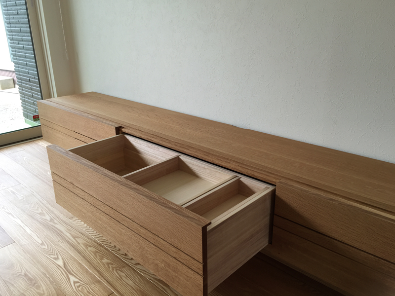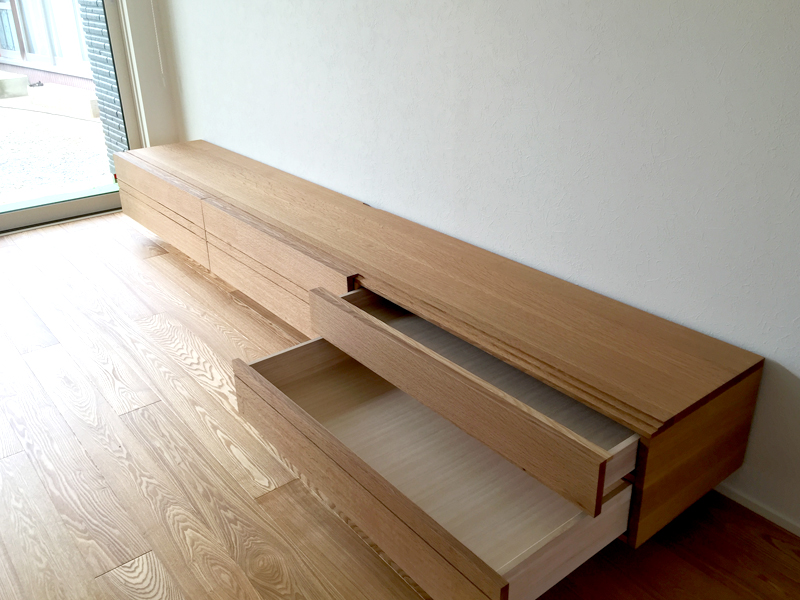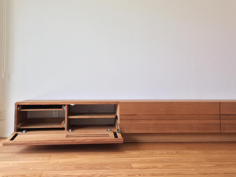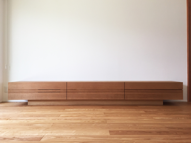 迫力あるW300cmのホワイトオーク無垢材『LINEA』TVボード