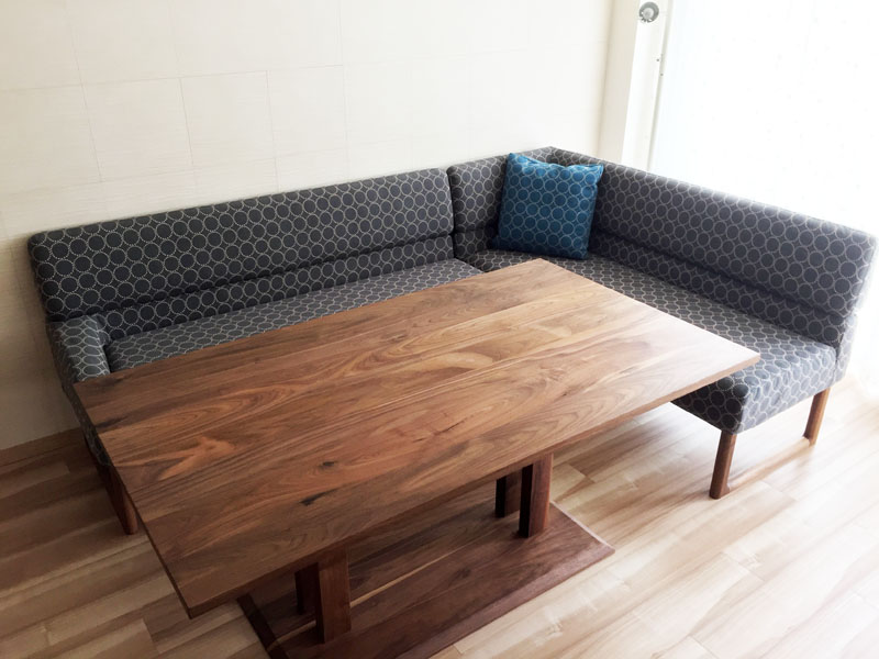 今回の納品は、今人気のソファとダイニングを一つにしたダイニングソファです。