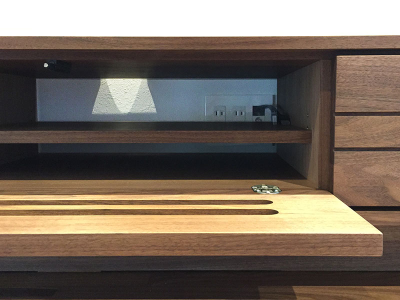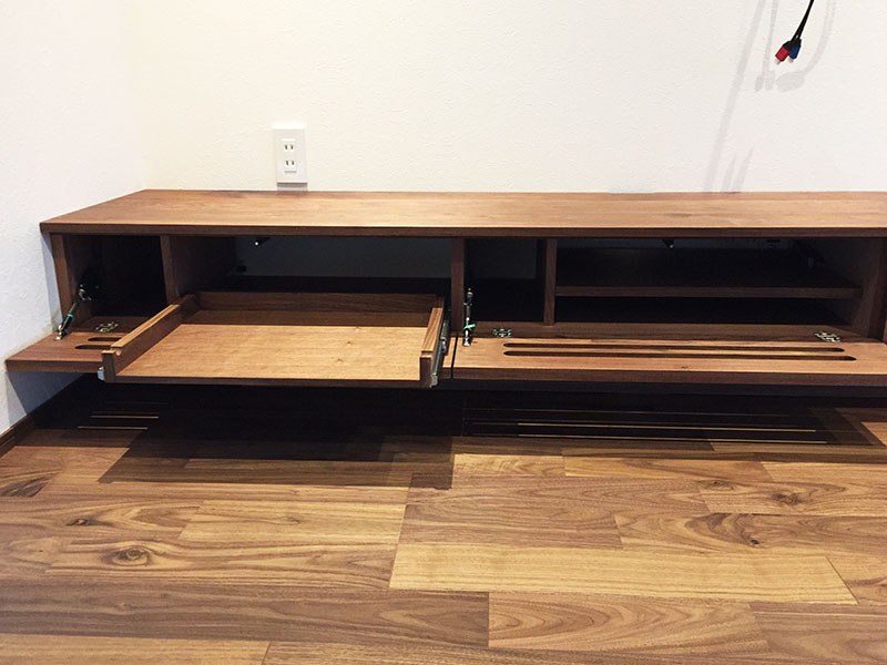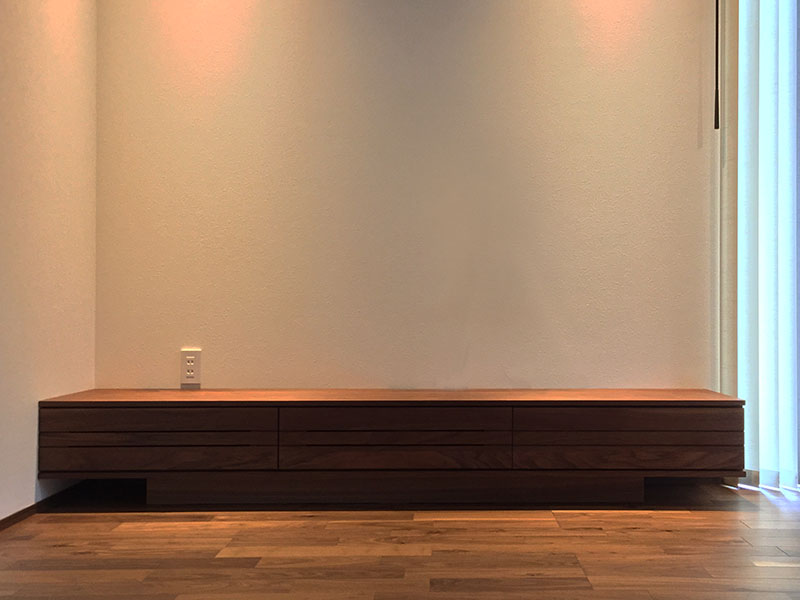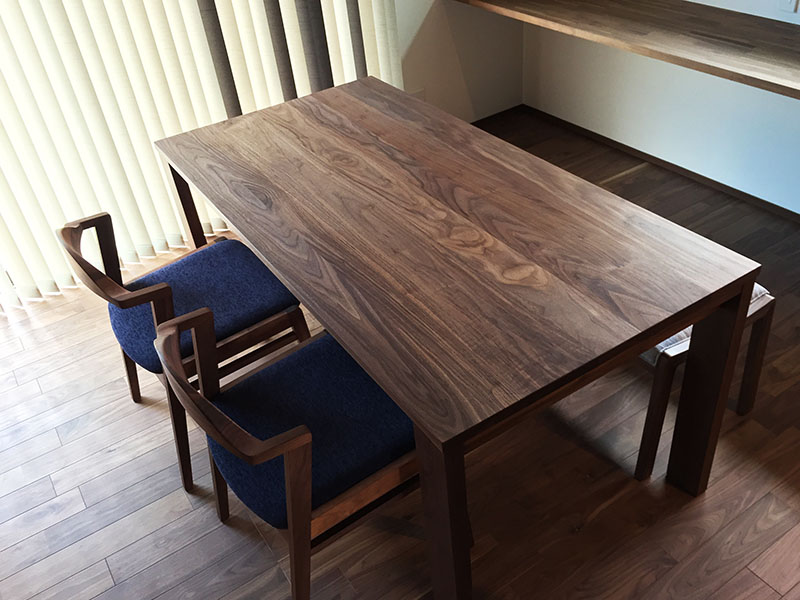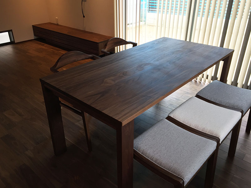今回の納品はウォルナット無垢材のTVボードとダイニングです。