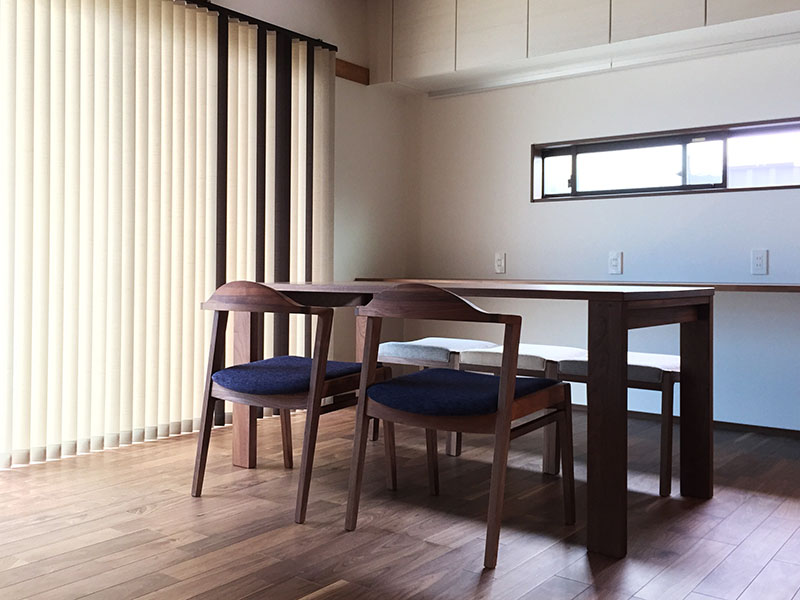 ダイニングはテーブルの長さ160cmの無垢テーブル。