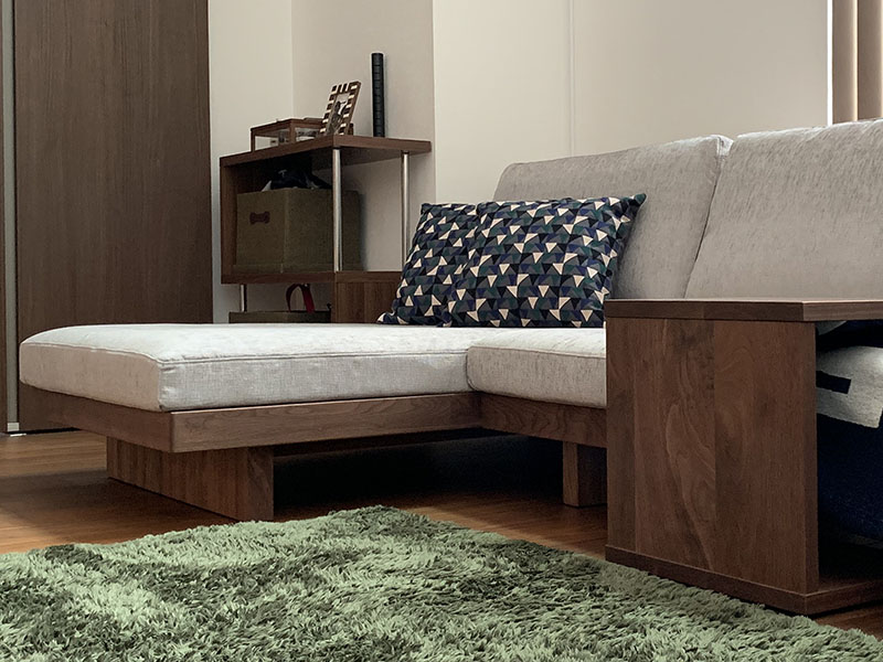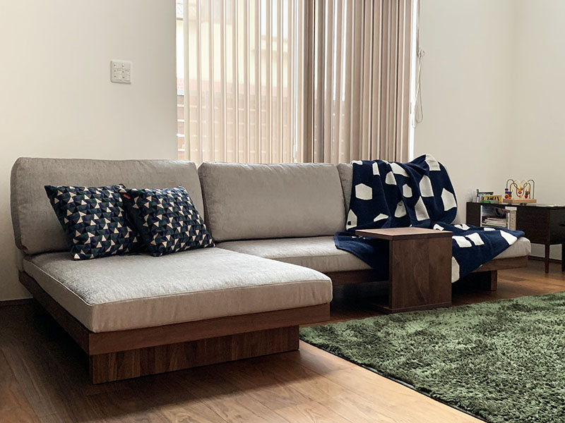 通常のソファの高さよりも、脚のみ4㎝アップして、立ち座りや、掃除がしやすくしました。