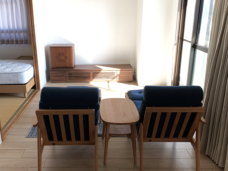 無理に大きな二人掛けの横長のソファにするより、コンパクトな一人掛けのソファを並べて置いたほうが、隣の人を気にせずに自分の空間を作れてゆたっり寛げれたりできます。