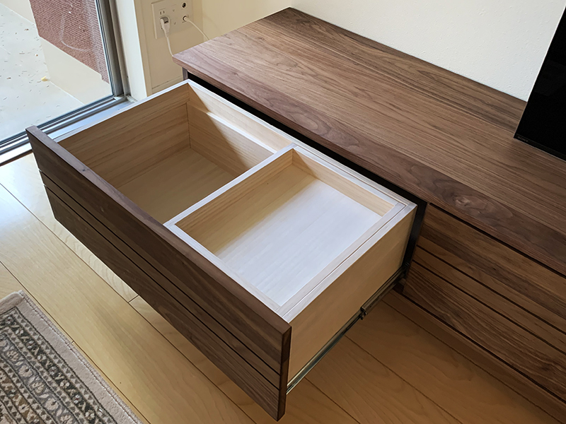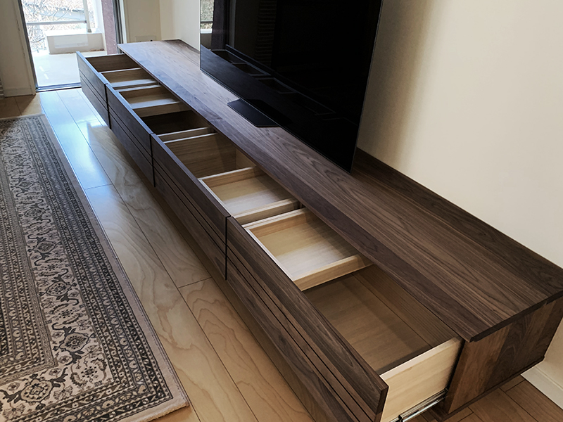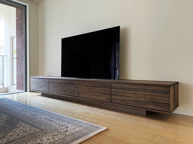 納品レポート 長野県茅野市Y様邸 2020.01.08 納品レポート 今回の納品は長野県蓼科の別荘地にTVボードを設置しました。 TVボードは『LINEA』シリーズハイタイプ300㎝。レコーダーなどのAV機器がなかったため、4列すべて引き出し収納タイプにしました。浅いトレーも付いているので、細かい収納も出来る大容量リビング収納棚になりました。 Y様、この度はご購入いただきましてありがとうございました。