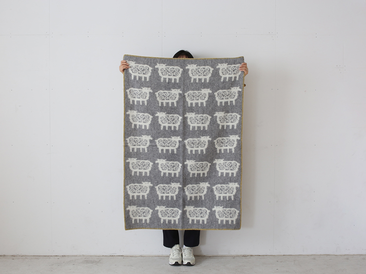 ▲ウールハーフブランケット ベングトのヒツジ (SIZE:90×130cm/グレー/ イエローステッチ) KP893124