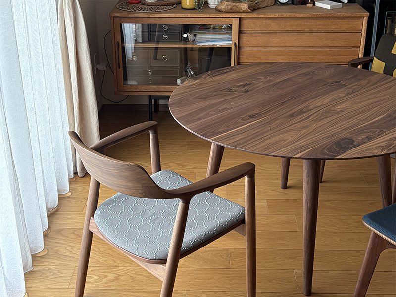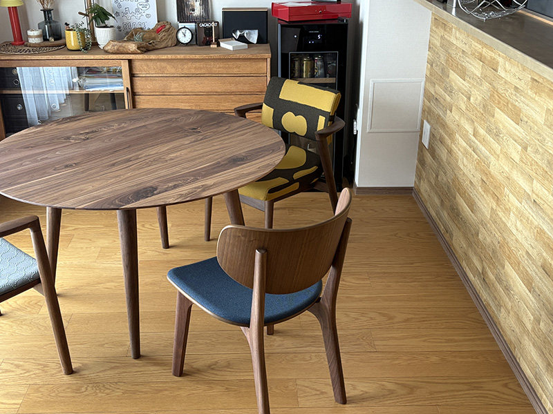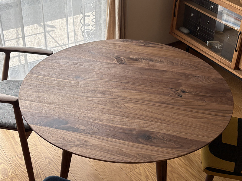 - paletaダイニングテーブルφ1100 H640 t25 ウォルナットNo.1(節多め)オイル仕上げ