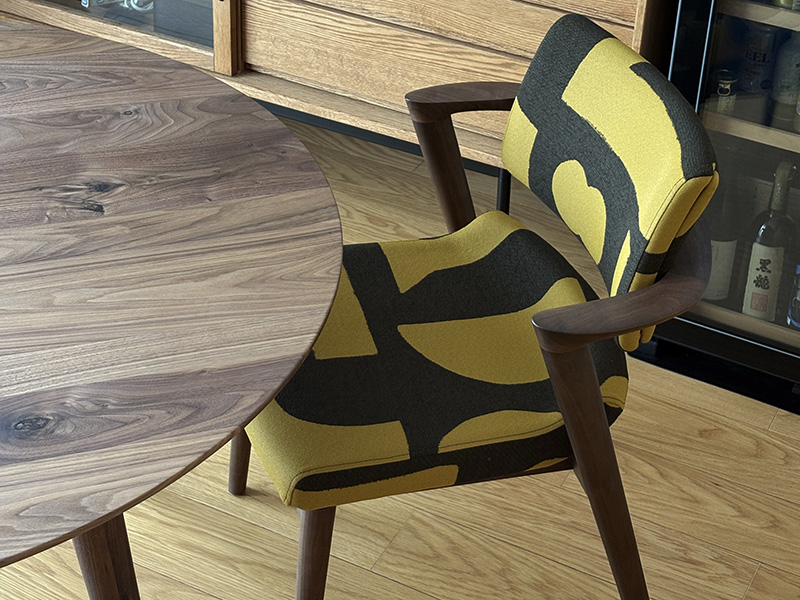 SEOTO-EXセミアームチェア(張地:クツロギDG 飛騨産業が100周年を記念して、日本を代表する染色家の柚木沙弥郎氏と新しく作られ特別張地)