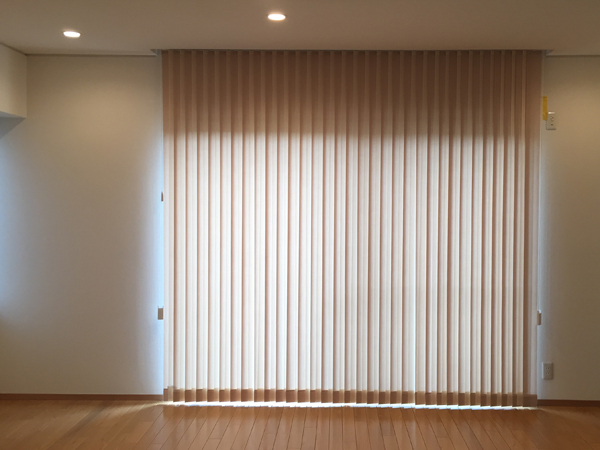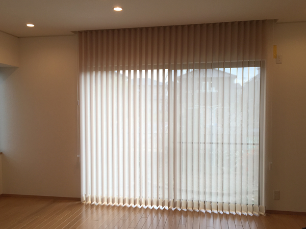 リビングに取り付けたバーチカルブラインド。