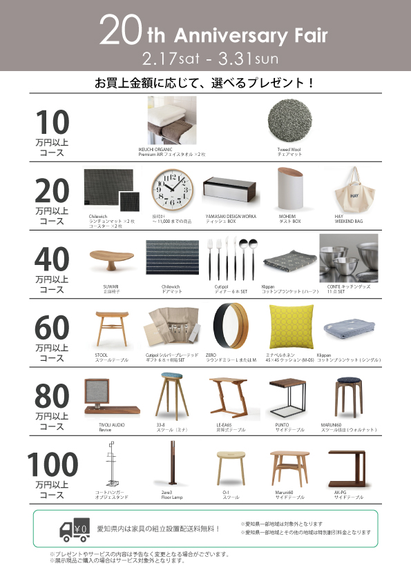 ※家具・雑貨お買い上げ時のプレゼントにはそれぞれ条件がございます