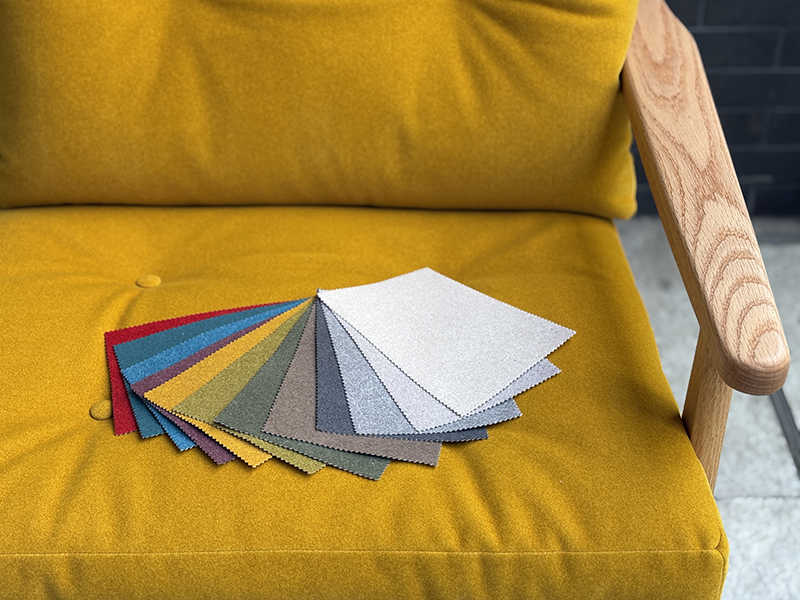 2色の糸がにじみ合ったようなメランジェカラーが美しい張地です。ざっくりとしたボリューム感がありながら艶のあるスムースな肌触りが特徴です。全4色からお選びいただけます。