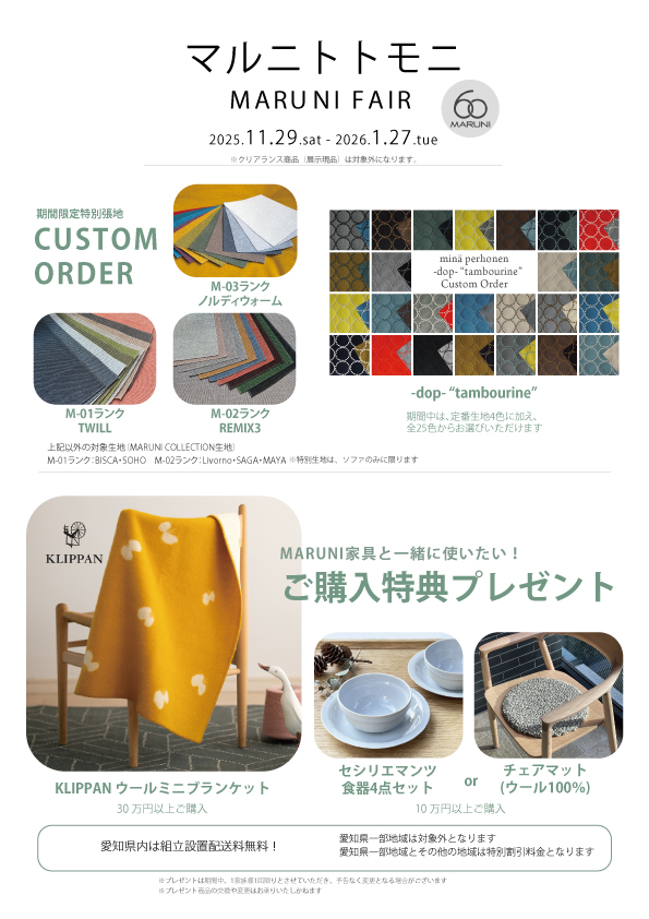 2025/11/29㈫よりマルニ木工の人気シリーズ 「マルニ60 カスタムオーダーフェア」を開催致します。