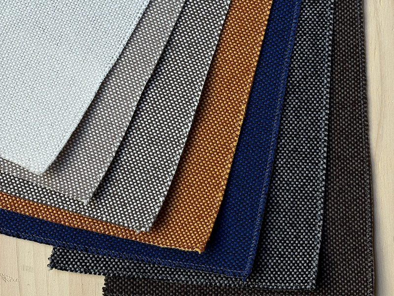 数色の糸を織り込んだナチュラルなカラーと清涼感のある風合いが特徴です。アクアクリーン加工を施し、汚れがつきにくく、水だけで汚れを落とすことができるメンテナンス性に優れた張地です。全4色からお選びいただけます。