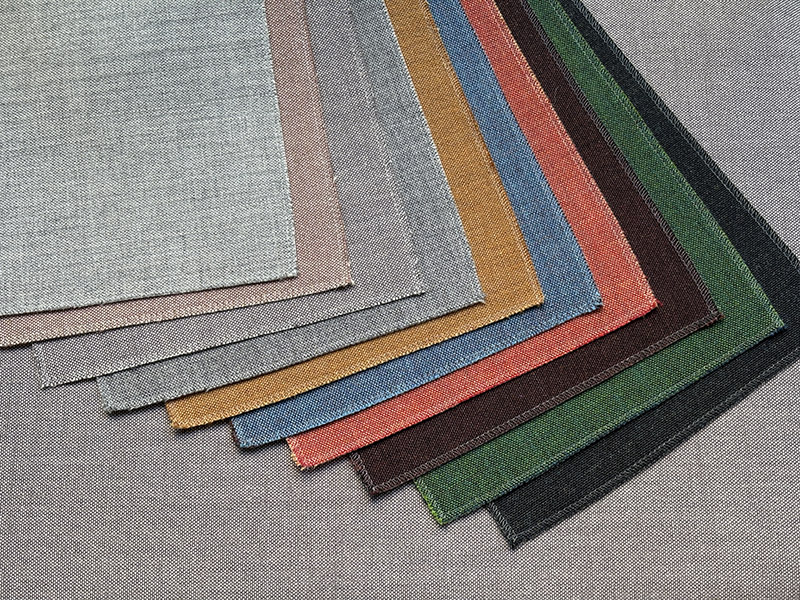 ウールのような風合いを持つポリエステル糸による、豊かな質感と手触りの良さが魅力の綾織物です。3色の糸を組み合わせた深みのある色合いに仕上がっています。全9色からお選びいただけます。