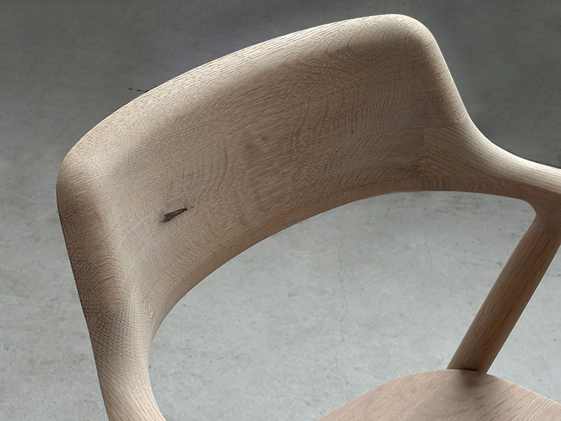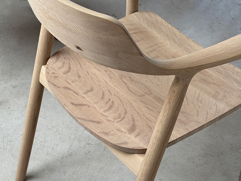 「HIROSHIMA natural」は、木を削る過程で現れる節やカナスジ、色ムラなど、木の自然な表情をそのまま活かして作られたHIROSHIMAアームチェアの数量限定モデルです。素材の美しさをより深く味わっていただくために、ソープフィニッシュで丁寧に仕上げられています。