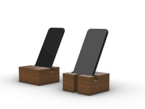 『マルニ木工』の代表的なアームチェア「HIROSHIMA」と同じ材料で作るスマホスタンド。