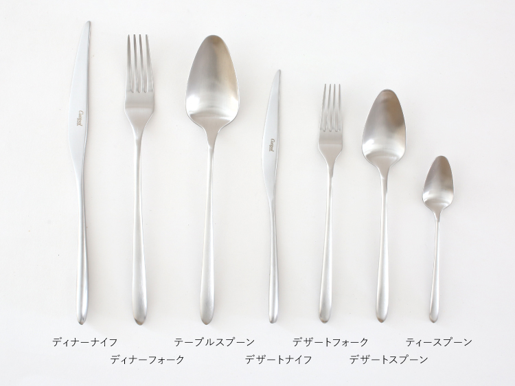 マットシルバーのツヤ消し仕上げが施されたカトラリーは、シンプルで洗練された印象を与えます。クチポールのカトラリーはポルトガルの自社工場で一本一本丁寧に手作業で仕上げられています。ハンドメイドならではの繊細な形状・刃先の美しさ、上品な輝き、使い心地の良さをどうぞお楽しみください。安心の品質は、大切な人への贈り物としてもおすすめです。