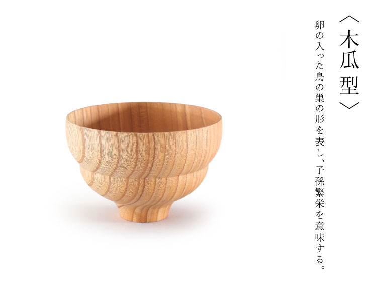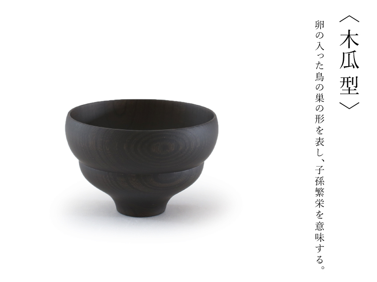 卵の入った鳥の巣の形を表し、子孫繁栄を意味する。