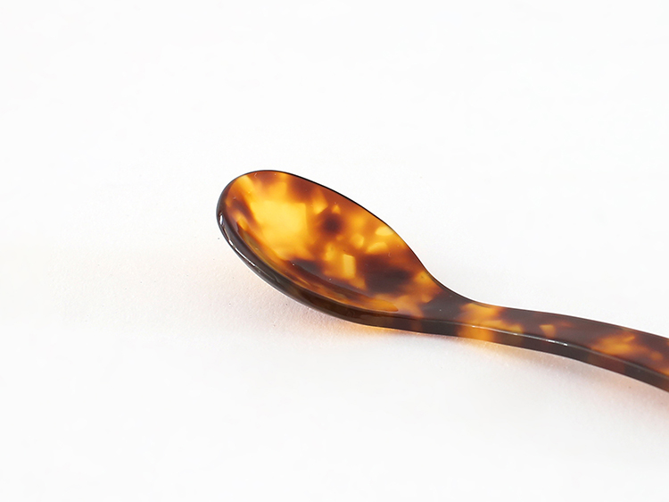 1862年創業の歴史を持ち、長年培ってきたアクリル加工の技術を生かしたスプーンは、光沢ある美しい仕上がりと、なめらかな口当たりが魅力です。