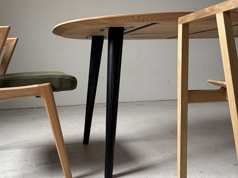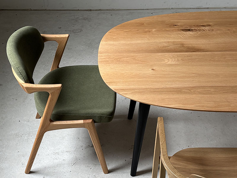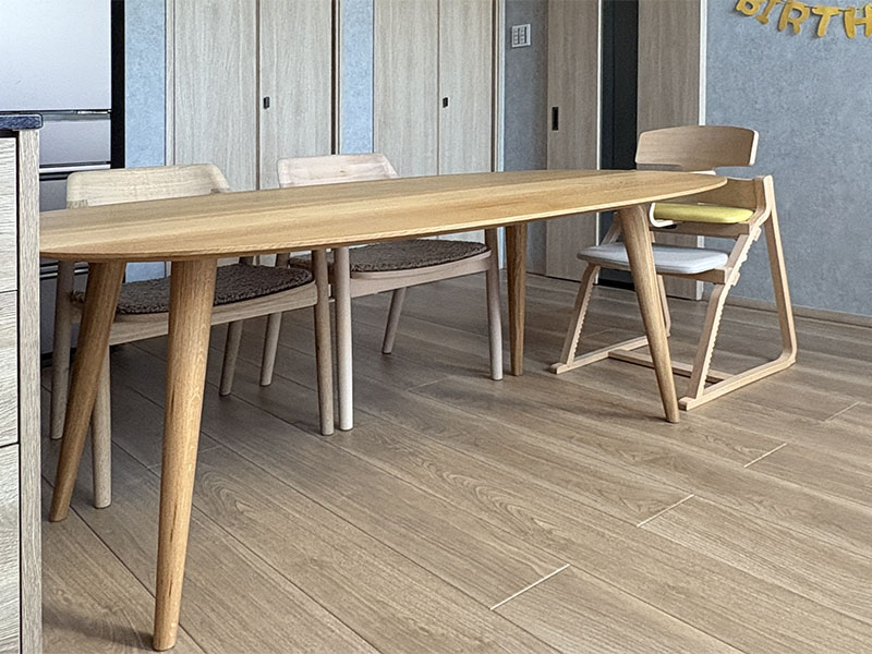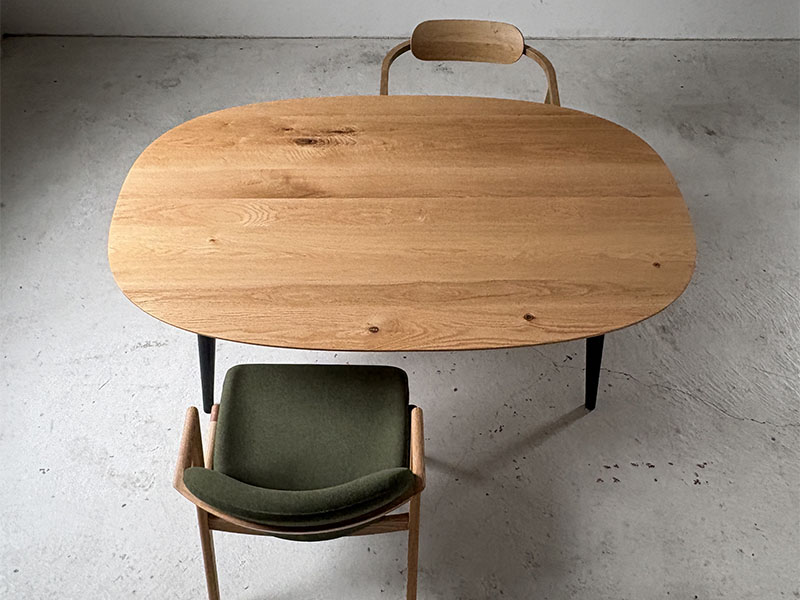 丸テーブルほど大きく感じず、長方形テーブルよりもやさしい印象の「Paletaオーバルテーブル」。