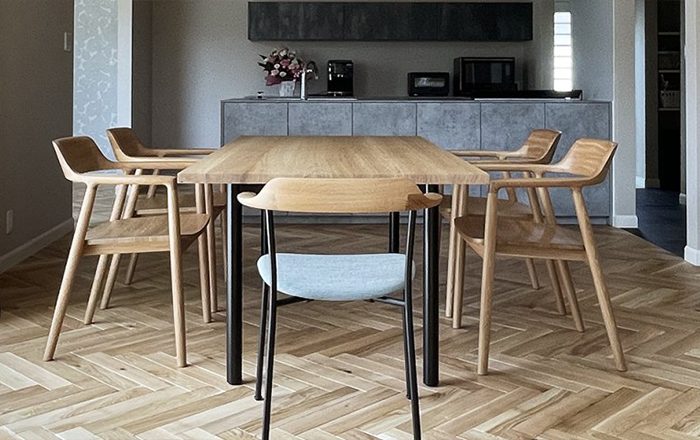 岐阜県郡上市T様邸・戸建・CARA耳付きダイニングテーブル、HARPチェア 自然 ・・more