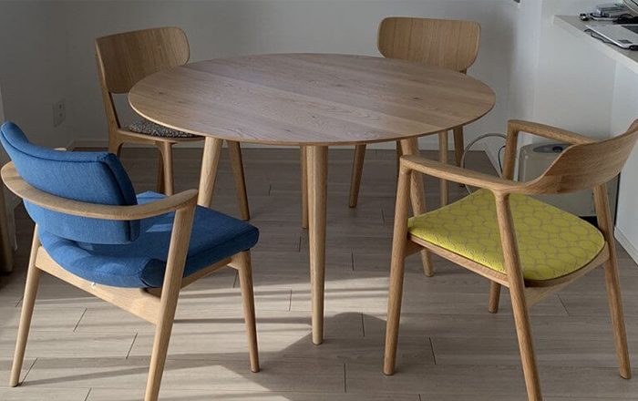 4人掛けサイズのラウンドテーブル φ120㎝のオーク無垢材の『Palettaダイ ・・more