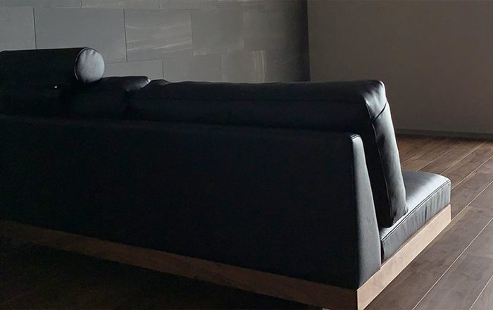 上質な素材感と開放感を味わう空間 ウォールナットの濃い木目色とブラックレザーの『 ・・more