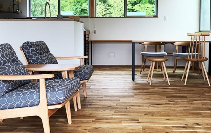 オーク無垢材に囲まれた温もりのある生活! 建具の材質に合わせて家具はオーク材で統 ・・more