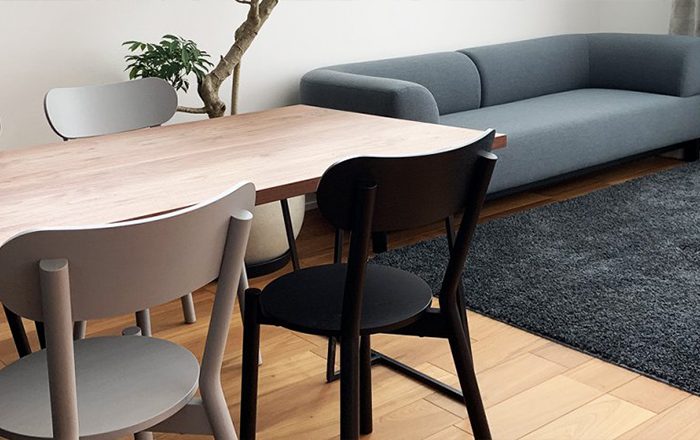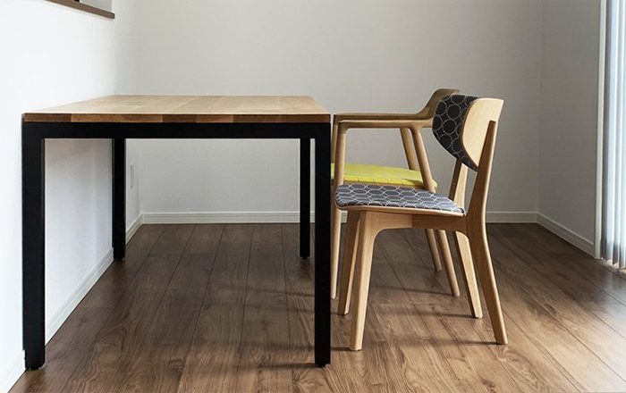 ブラックアイアン脚のFORMAダイニングテーブル。オーク材の天板がやさしい質感を ・・more