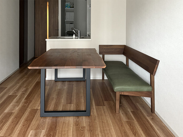 マンション・ダイニング ウォールナットの美しさが際立つ耳付きダイニング 天板には ・・more