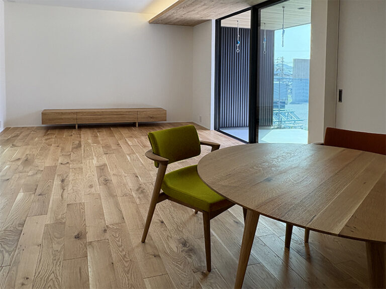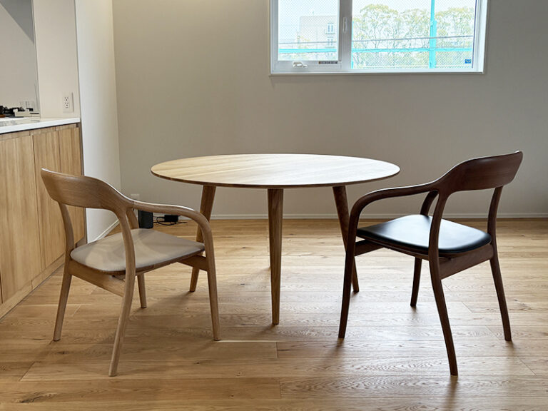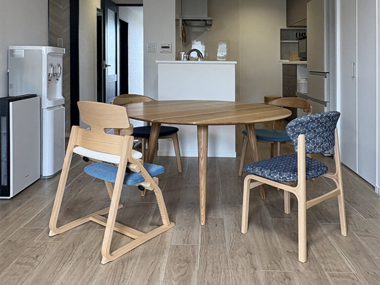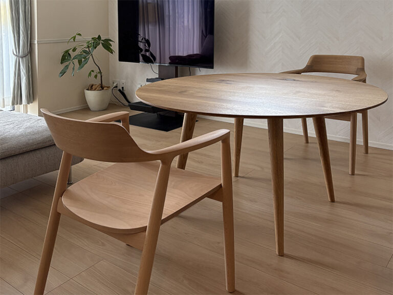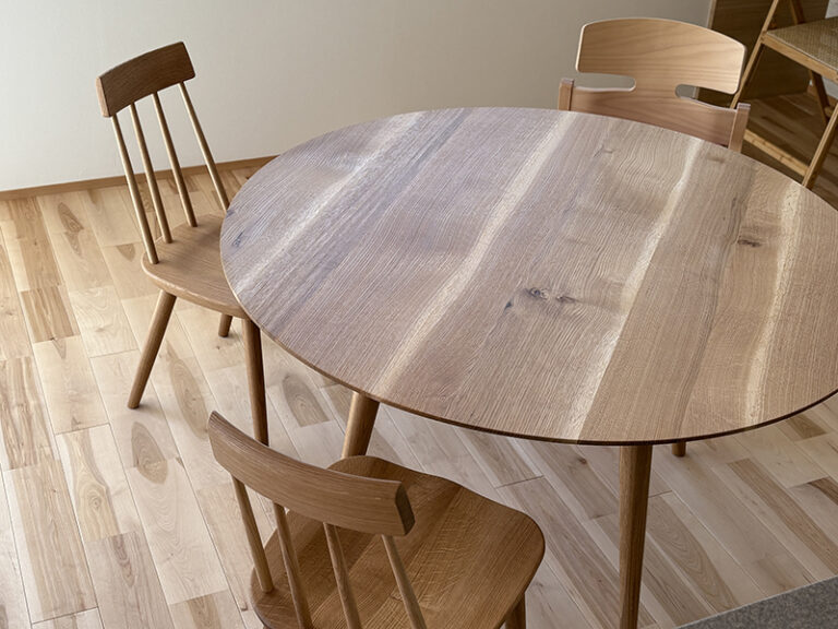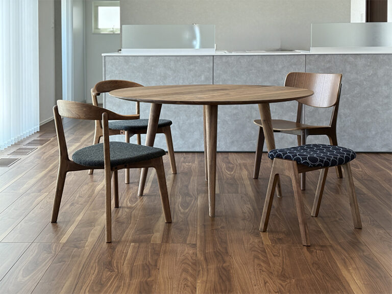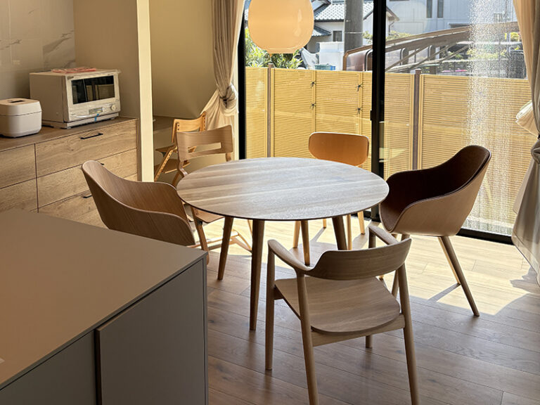 戸建・ダイニング 家族みんなで囲んで食事ができるラウンドテーブル ナチュラルな木 ・・more