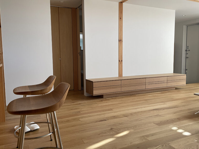 戸建て・TVボード 自然素材を楽しむ無垢材の家具 フローリングの木目と美しく調和 ・・more