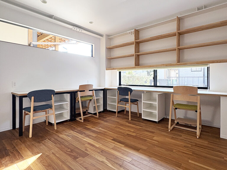 戸建・デスク 家族みんなで姿勢を守りながらお勉強を デスクワークスペースを設け、 ・・more