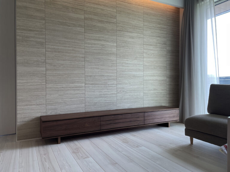戸建・TVボード ウォルナットの美しい木目が引き立つTVボード 約3000㎜の壁 ・・more