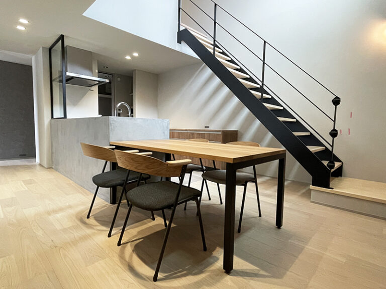 戸建・ダイニングテーブル 無垢材とBKの洗練された空間 無垢材の天然木のあたたか ・・more