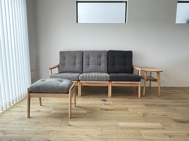 戸建・maruni60ソファ ミナペルホネンとマルニ60 1人掛片肘ソファを並べ ・・more